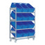 Estantería industrial móvil con 4 estantes inclinados y 12 cajas plásticas azules - Dim.: 1368x533x1815h mm - Galvanizado