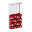 Estantería metálica con 32 cajas Openbox SK rojas - Dim.: 1058x324x2000h mm - Acero cincado