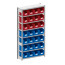 Estantería metálica con 28 cajas Openbox SK, 16 azules y 12 rojas - Dim.: 1058x324x2000h mm - Acero cincado