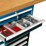 Banco de trabajo estándar - Dim.: 3000x750x850h mm - Encimera DM, 1 pata, 2 armarios con cajones - Azul ral 5012