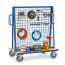 Carro expositor con paredes de malla para herramientas - Dim. plataforma 1.200 x 800 mm - Azul ral 5007