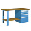 Banco de trabajo estándar - Dim.: 1500x750x840h mm - Encimera DM, 1 pata, 1 armario, 1 estante inferior - Azul ral 5012