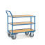 Carro de transporte para taller con 3 estantes fijos de madera - Dim. plataforma 850 x 500 mm - Azul ral 5007